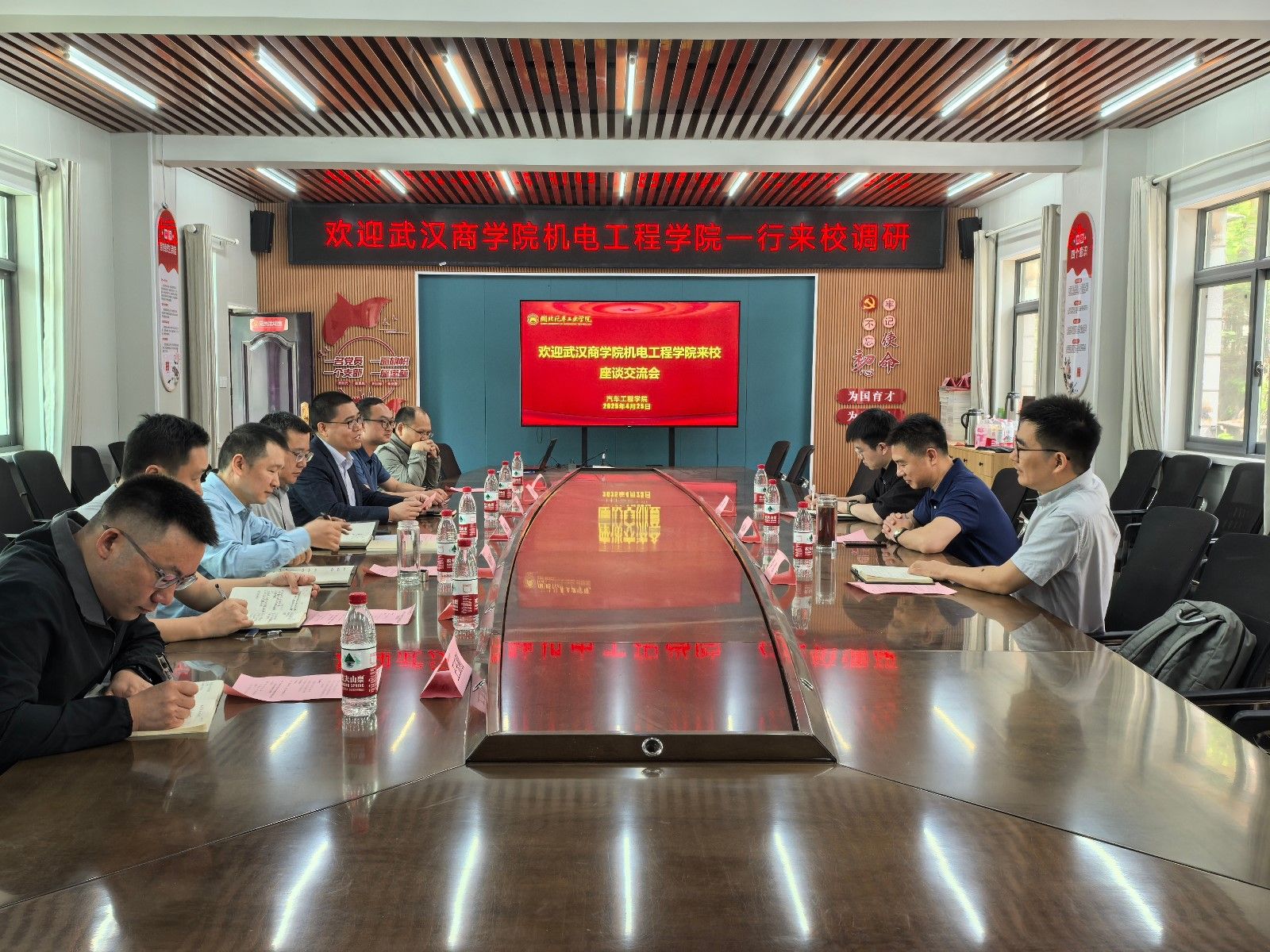 本网讯(文/图李函、宫雅楠)4月25日上午,武汉商学院机电工程学院院长姚层林一行莅临学校,进行新能源汽车工程专业建设交流。换妻 党委书记杨亚会、副院长董焱章及新能源汽车工程系骨干教师共同参加。